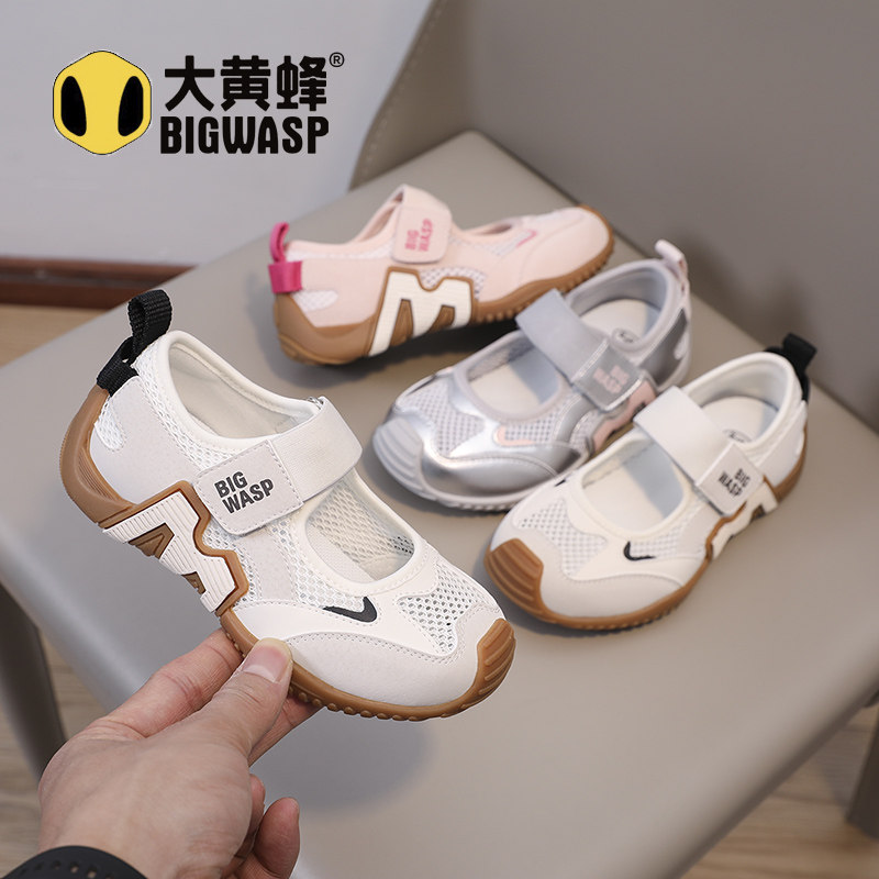 大黄蜂童鞋女童运动凉鞋春夏低帮包头网布鞋镂空透气软底休闲单鞋