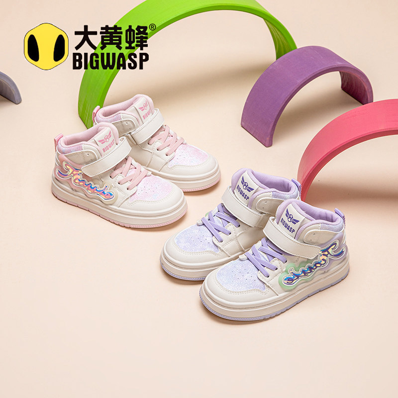 大黄蜂童鞋儿童学生板鞋高帮新款春秋款女童休闲软底魔术贴运动鞋