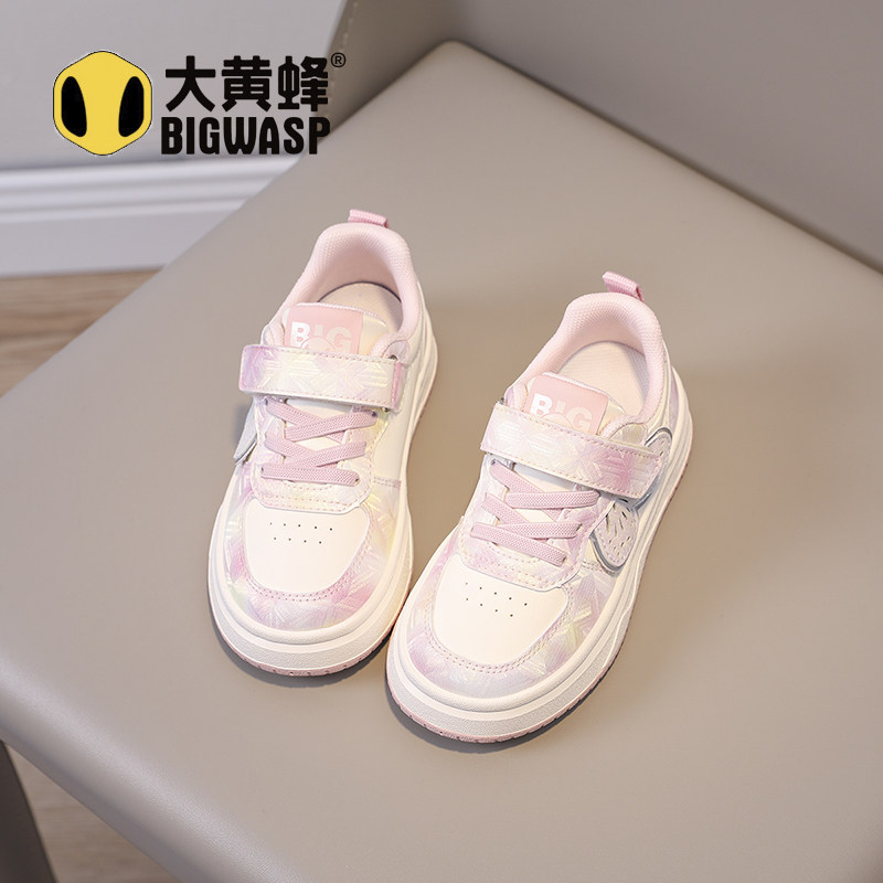 大黄蜂童鞋儿童休闲鞋春秋粉色校园学生板鞋魔术贴运动鞋女童鞋子
