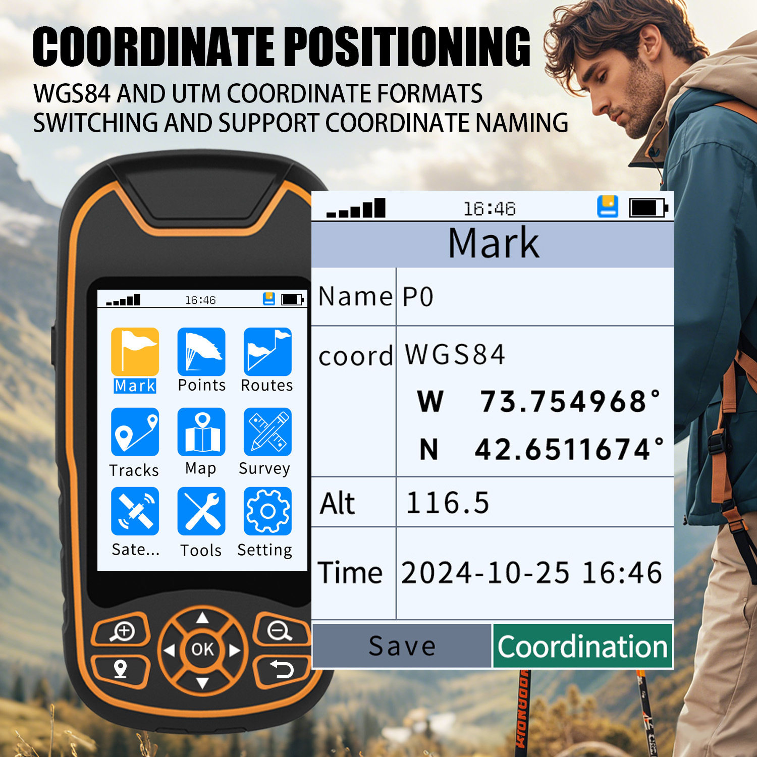 卓林A8英文版手持GPS定位仪经纬度坐标测量仪户外导航仪外贸出口