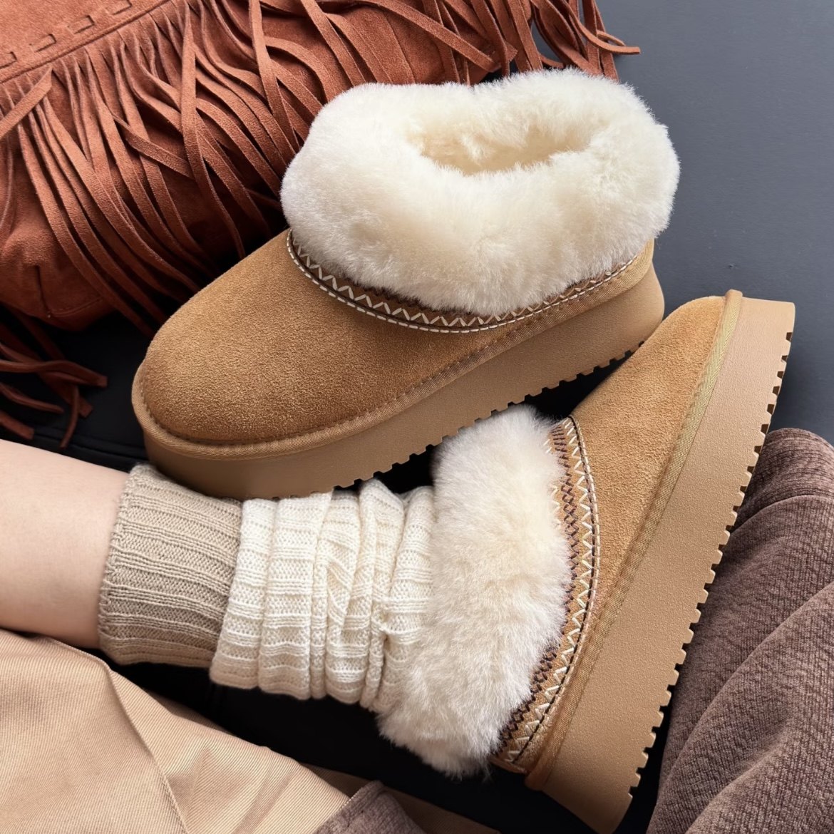 - 平底厚底短靴子