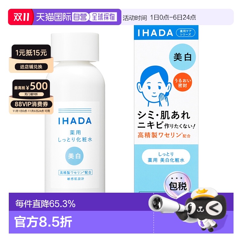 日本直邮IHADA 敏感肌适用凡士林修护净白化妆水 滋润型 180m正品