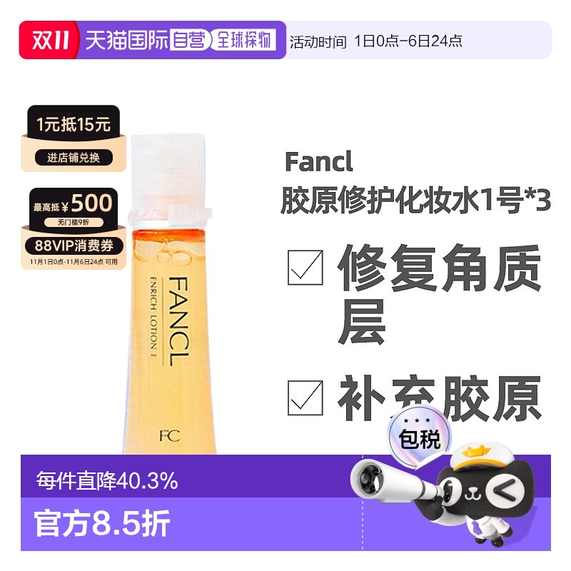日本FANCL1号化妆水黄色日本修护补水清爽型30ml*3支正品