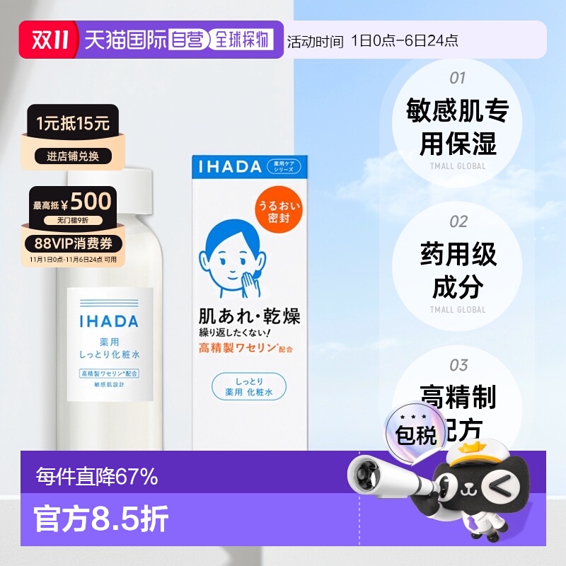 日本直邮IHADA 敏感肌适用凡士林修护滋润护肤化妆水 滋润型正品
