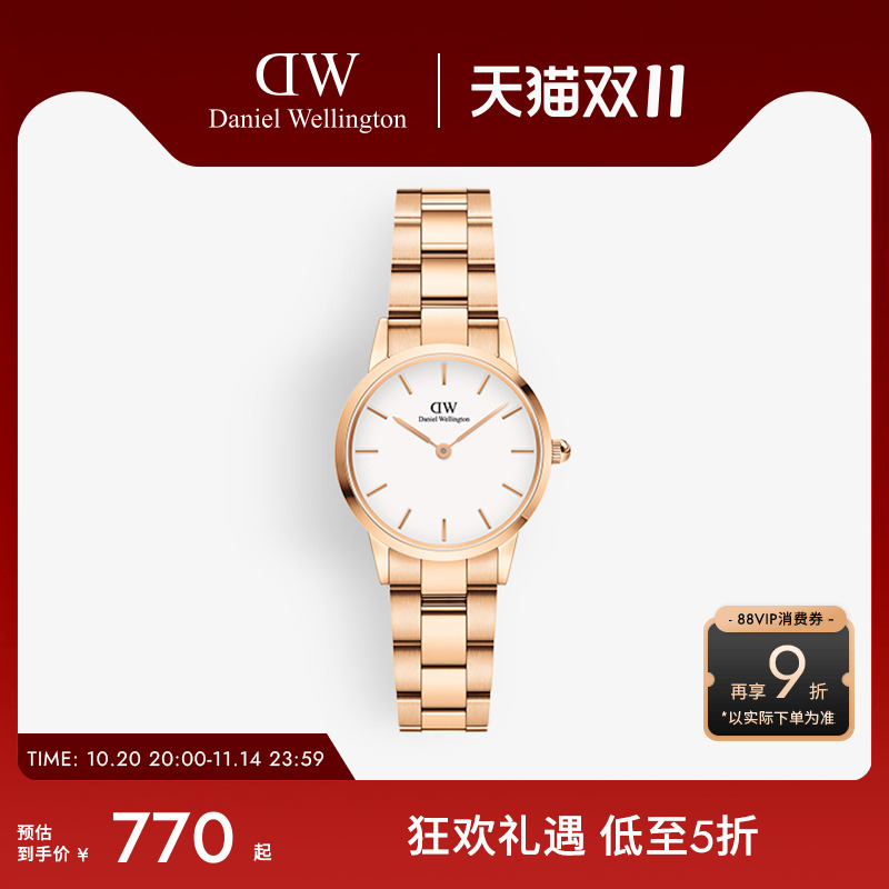 DW手表女 ICONIC系列时髦小精钢彩盘石英表 玫瑰金色商务女士腕表