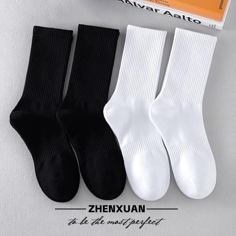 子墨袜子男士运动纯棉纱线中筒毛巾底夏季薄篮球美式长袜男生白袜