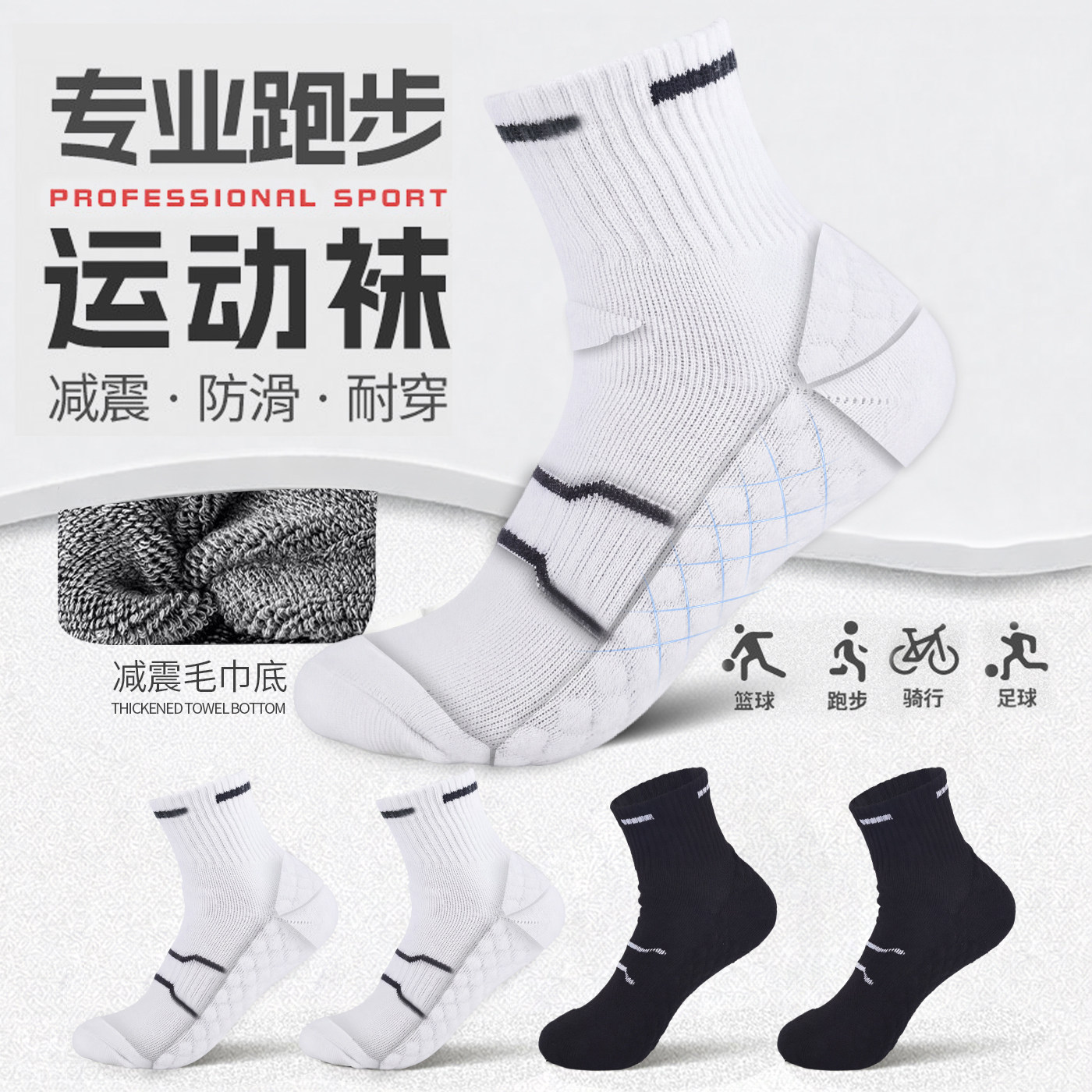 运动袜子男款跑步春夏季中筒纯棉防臭加厚毛巾底篮球袜羽毛球专业