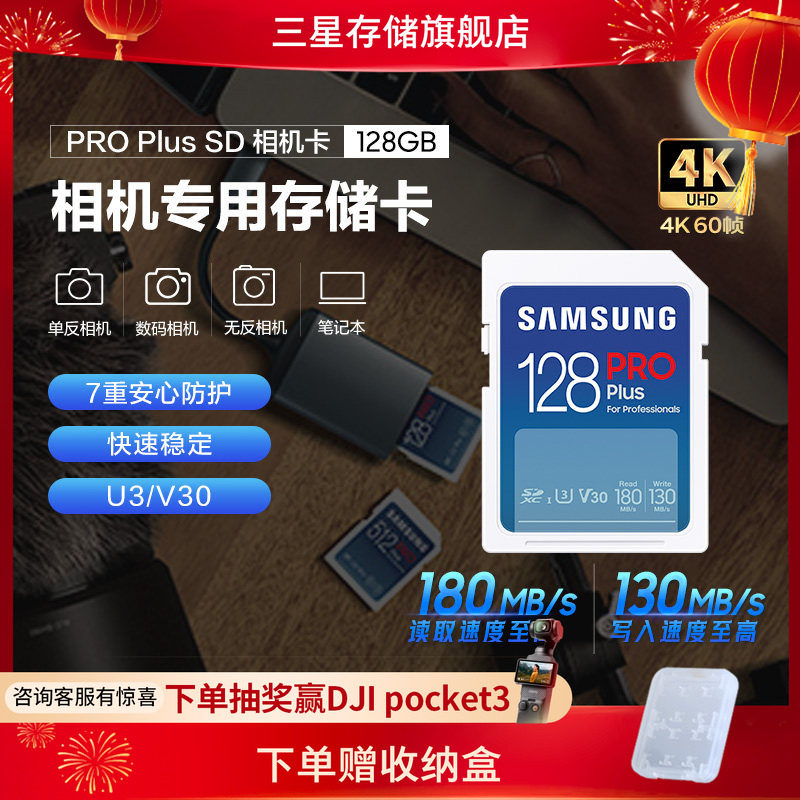三星SD存储卡128g单反SD相机内存卡U3高速V30佳能富士索尼4K连拍