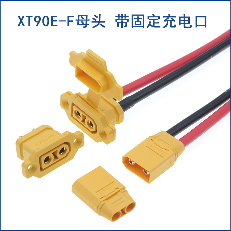XT90E带固定母座锂电池充电口插头XT90电动车航模电调公母连接器