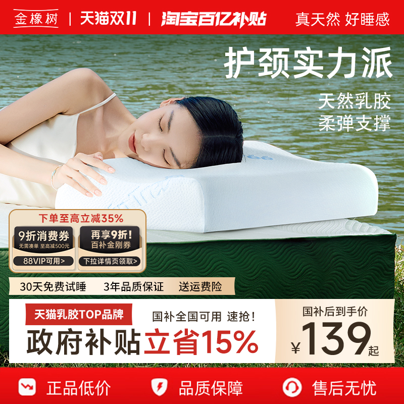 金橡树泰国原产进口天然乳胶枕头儿童护颈椎成人家用学生睡眠枕头