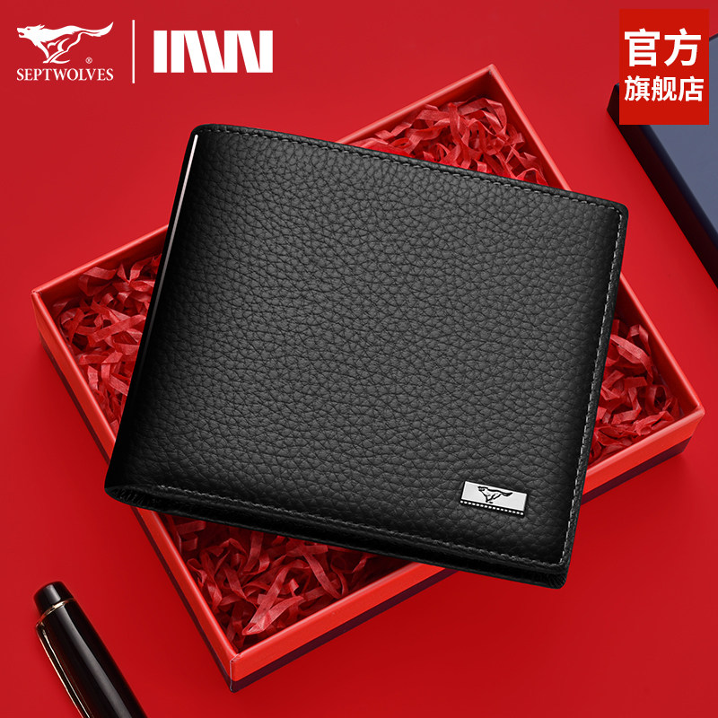 七匹狼钱包男士短款头层牛皮钱夹送男友爸爸老公皮夹高档生日礼物