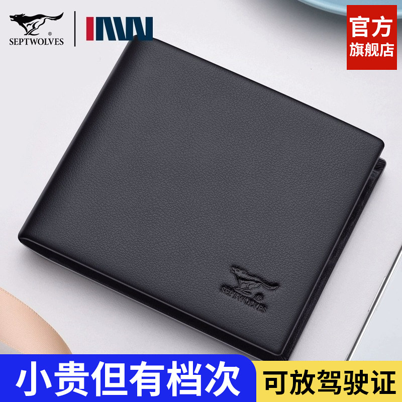 七匹狼钱包男士短款真皮钱夹高档牛皮韩版皮夹青年驾驶证商务票夹