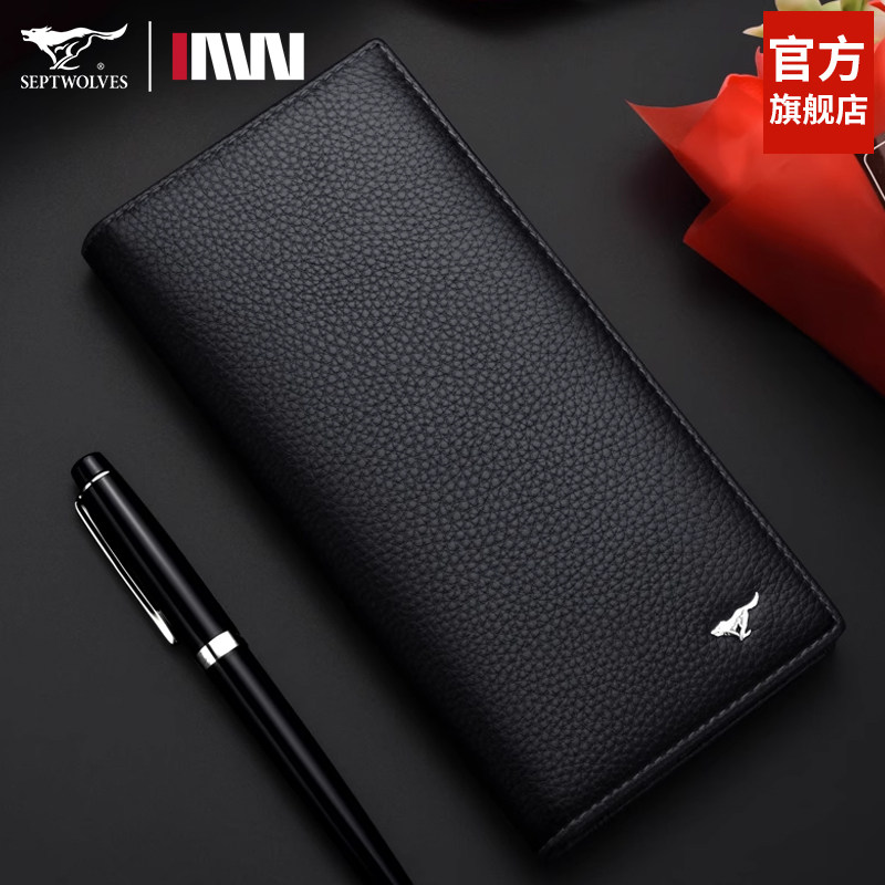 七匹狼长款钱包男真皮钱夹头层牛皮正品大容量手拿年轻人潮流简约