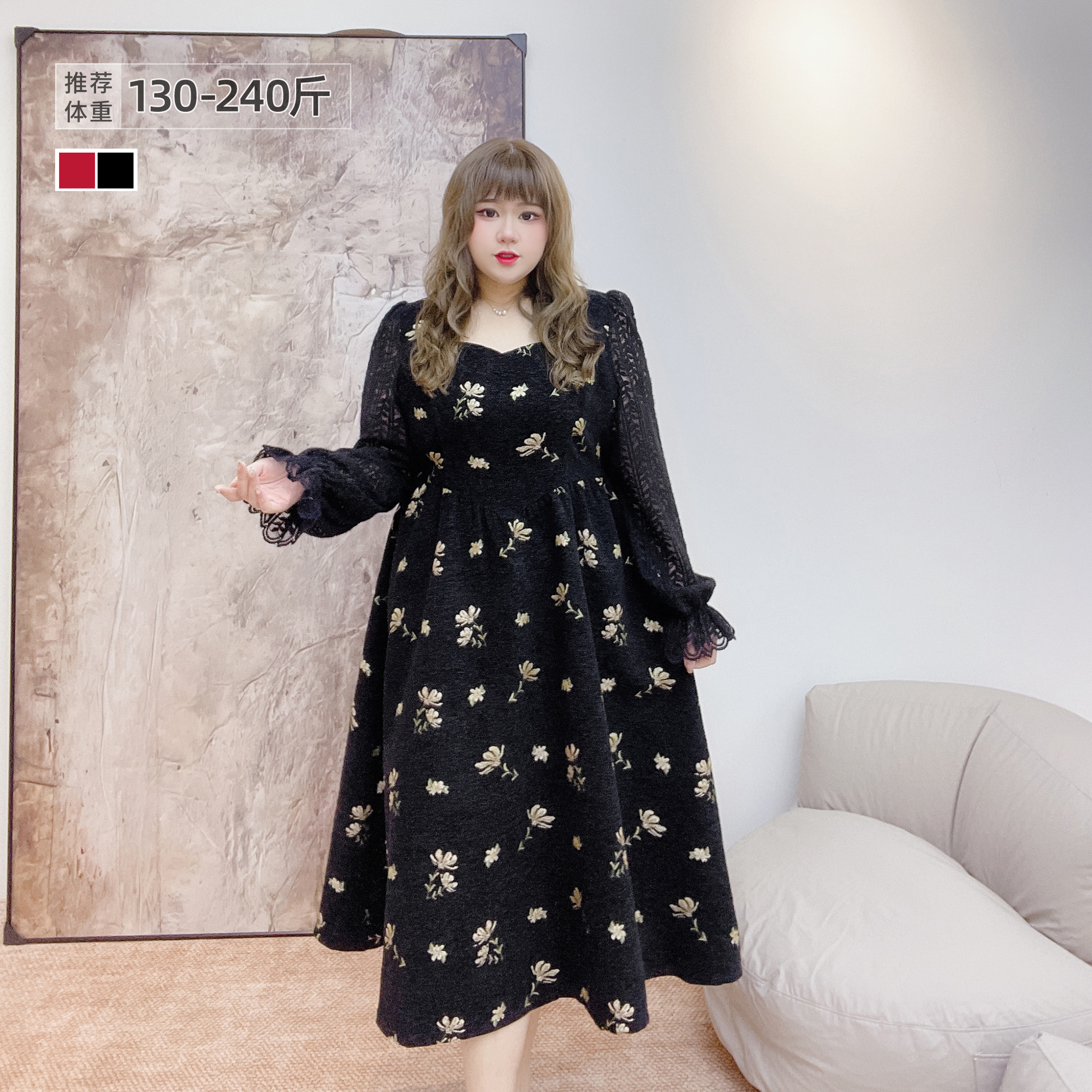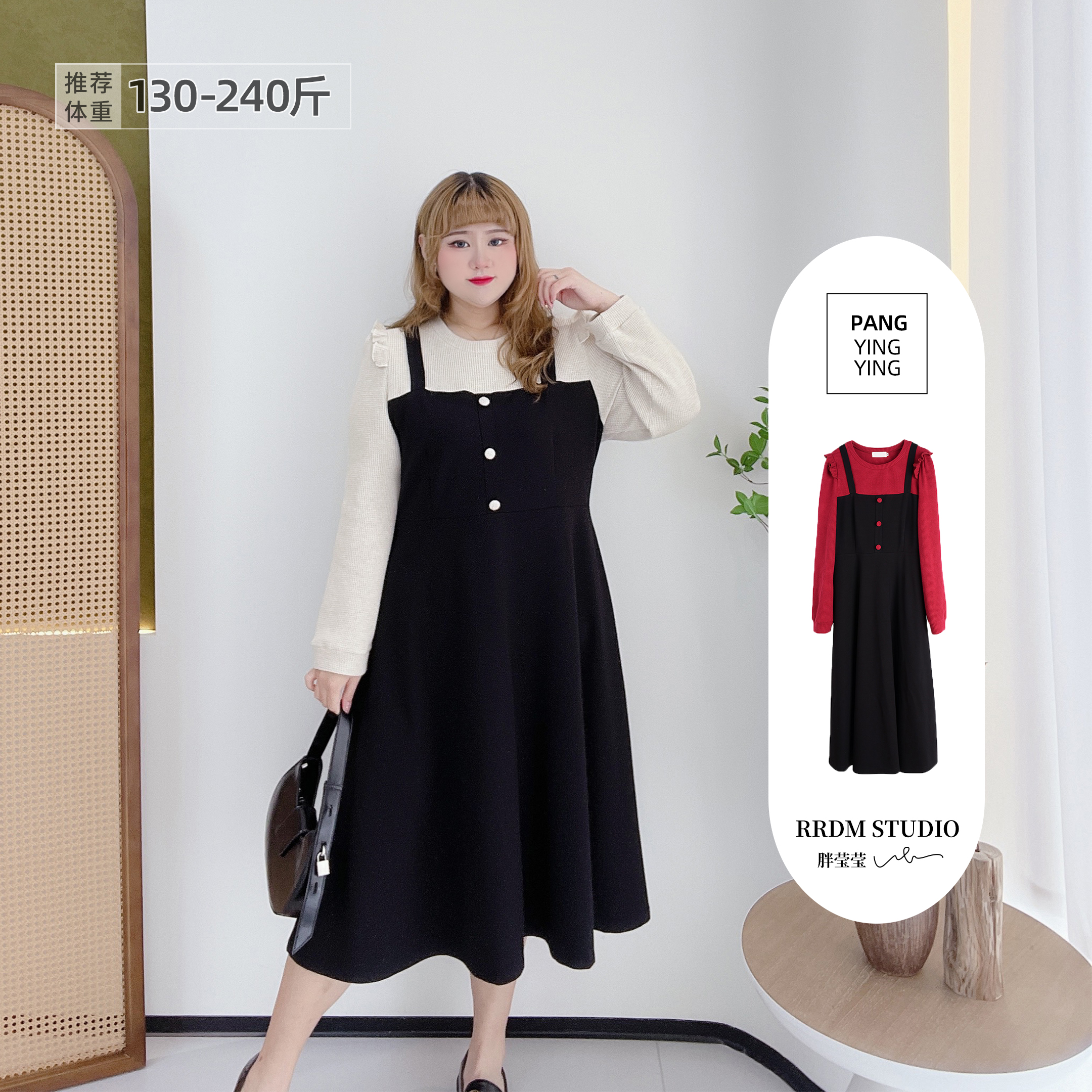 - 高腰大摆连衣裙秋冬款