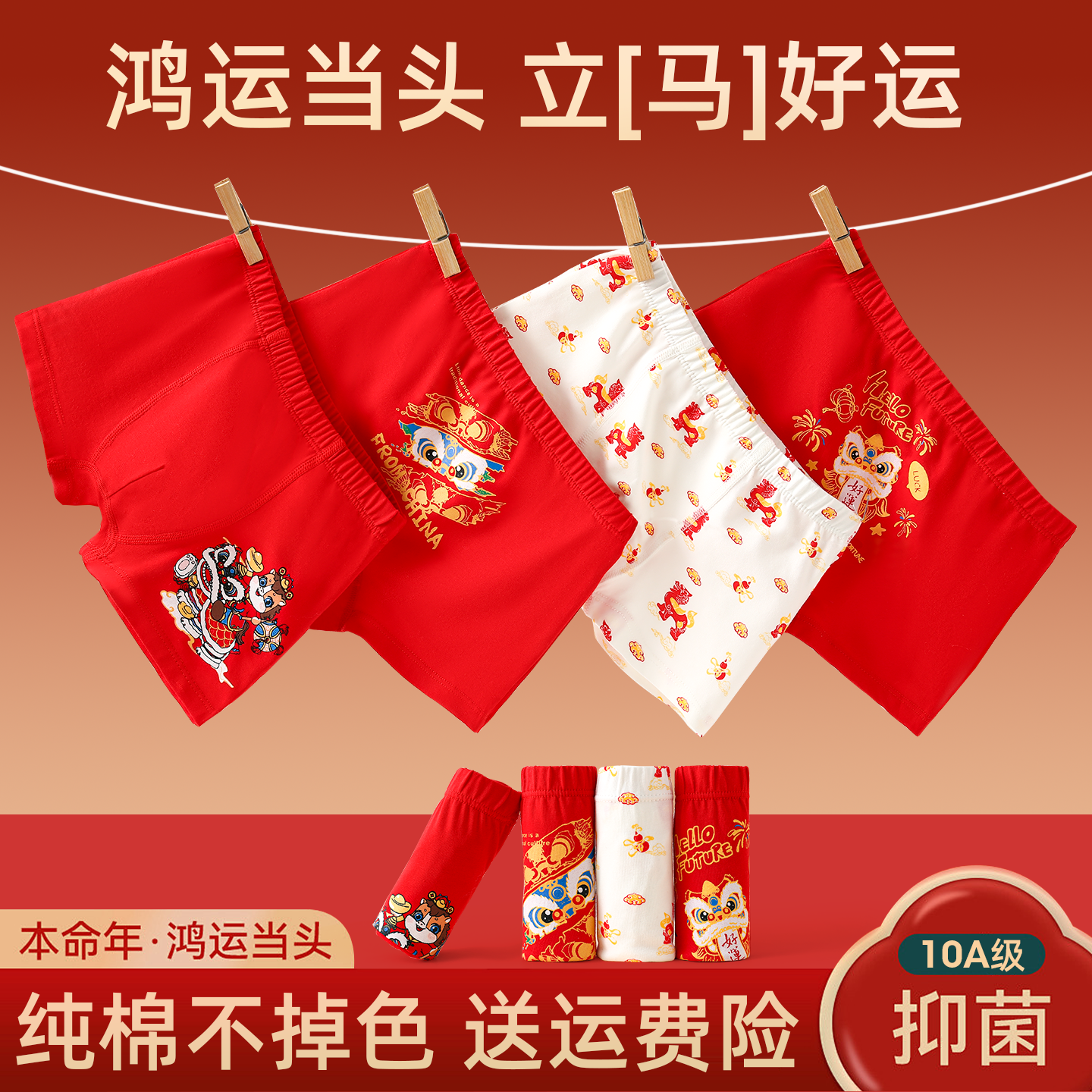 12岁男童本命年套装2026马年红内裤纯棉大童红色内衣男孩儿童短裤