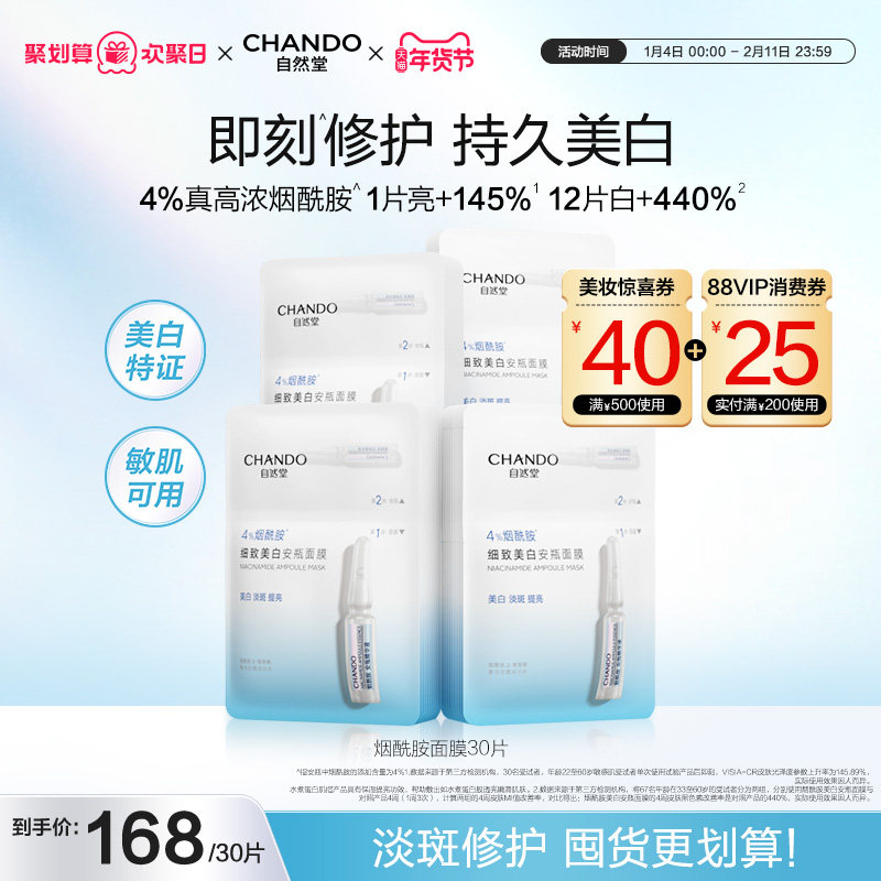 【下拉享优惠】自然堂烟酰胺细致美白面膜10片提亮肤质改善泛红