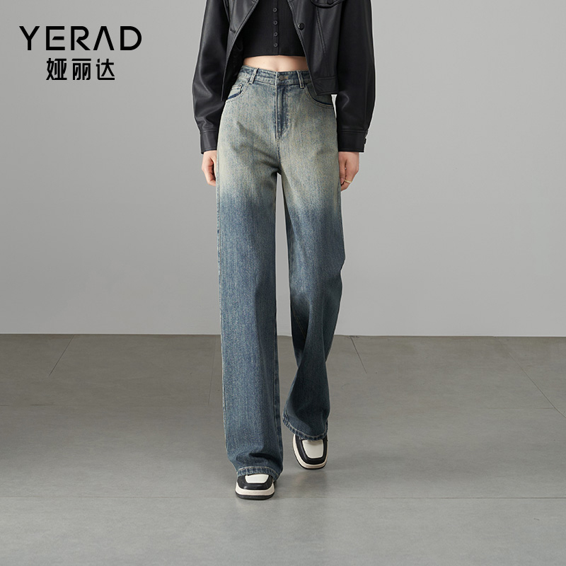 逸阳渐变色直筒牛仔裤女2025年秋季新款宽松显瘦窄版阔腿长裤子