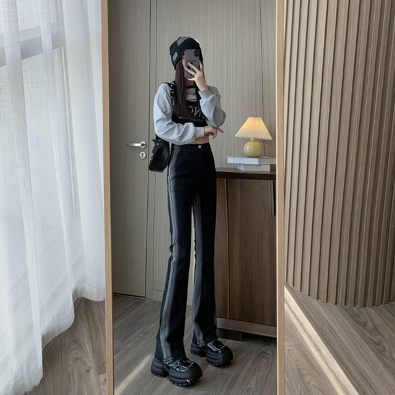 黑灰微喇牛仔裤女弹力2024秋新款高腰修身显瘦阔脚裤渐变色喇叭裤
