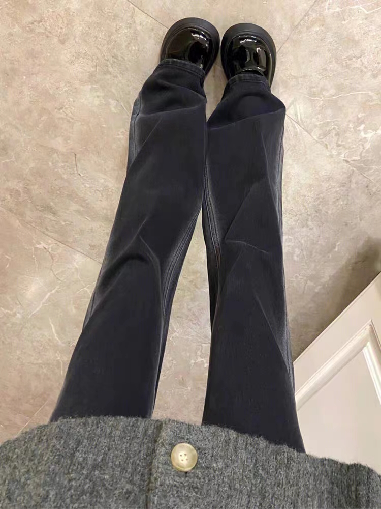 渐变黑灰色系带阔腿牛仔裤女秋冬季高个子175加长加绒直筒拖地裤