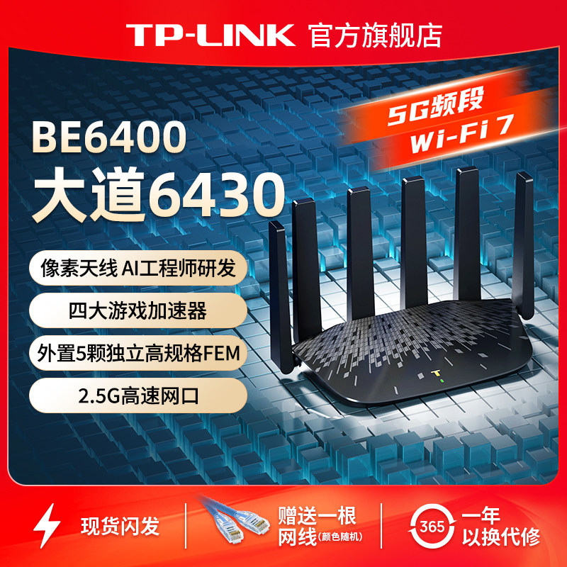 普联TP-LINK 大道路由器6430 BE6400 5G wifi7千兆家用高速2.4G wifi6 tplink无线 2.5G口大户型穿墙全屋wifi