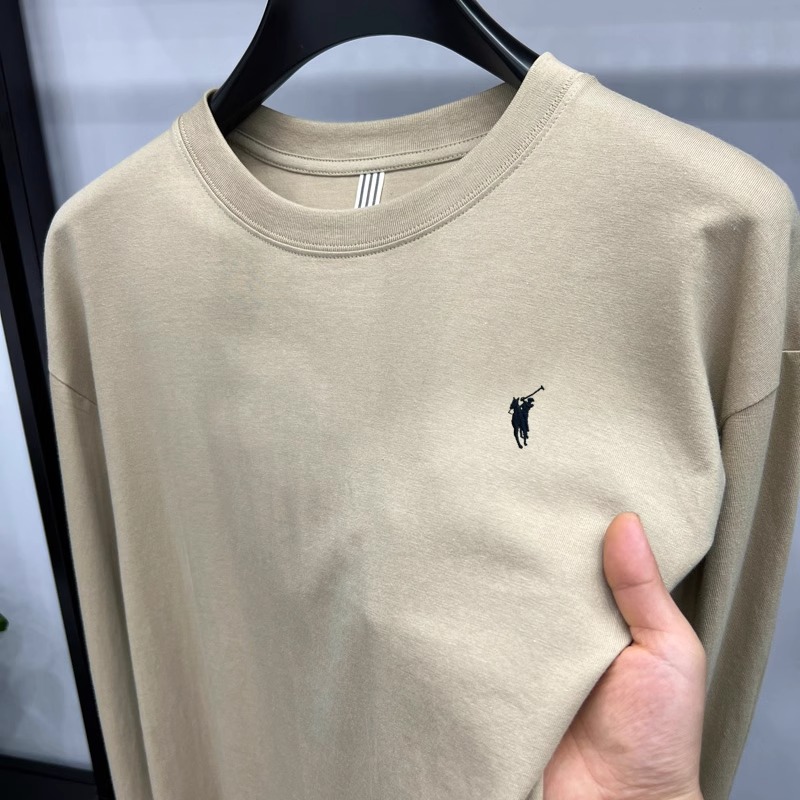100纯棉保罗正品男士长袖T恤圆领宽松大码纯色全棉体恤秋冬打底衫