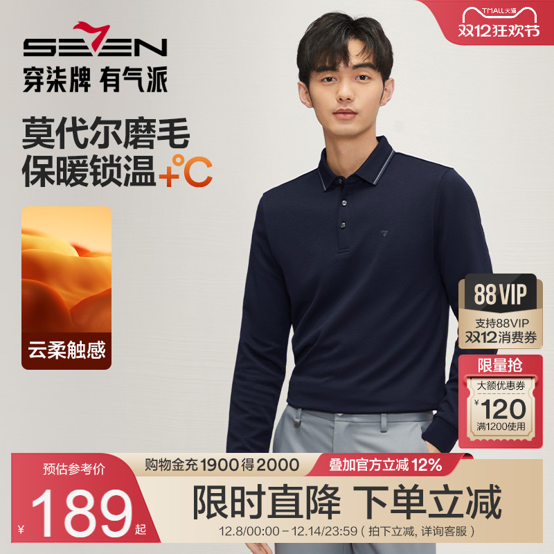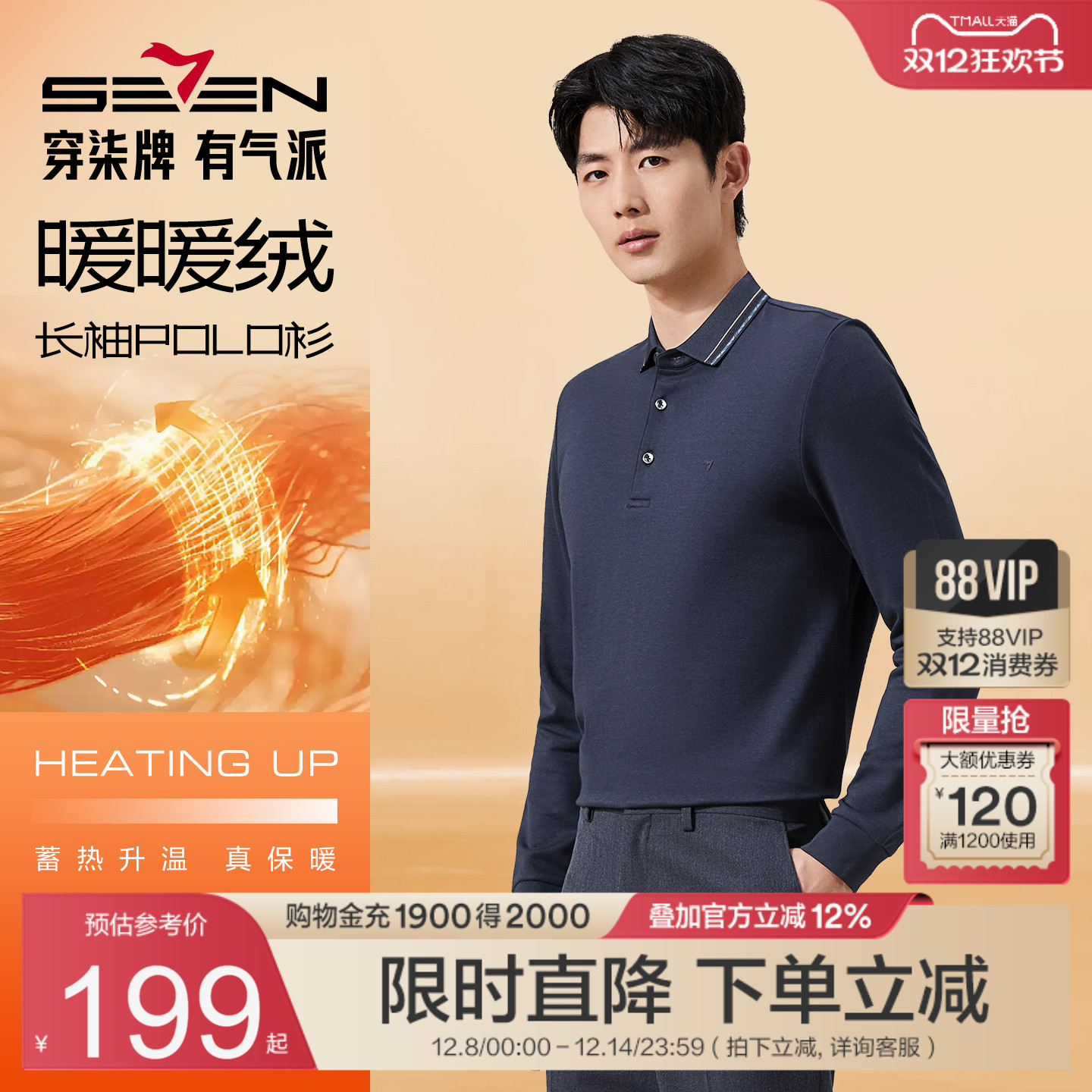 【暖暖绒不变型领】柒牌长袖POLO衫男装冬季薄绒保暖翻领上衣T恤