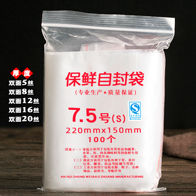 自封袋6号8丝夹链自封袋食品保鲜袋封口袋密封袋标准100只装包邮