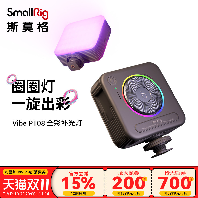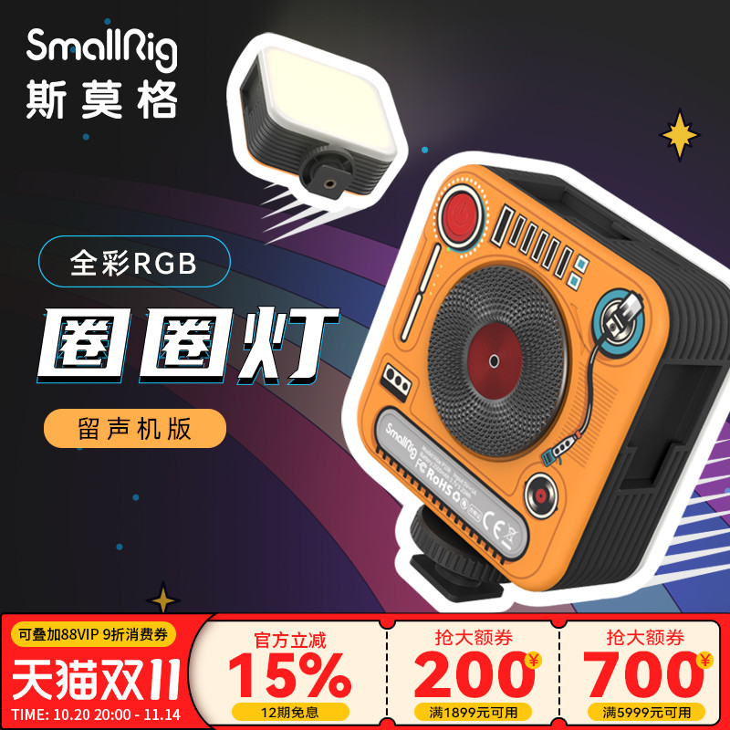 斯莫格圈圈灯留声机版便携式迷你补光灯手机相机拍照人像美颜打光led双色温豆腐摄影灯抖音RGB发丝平板补光灯