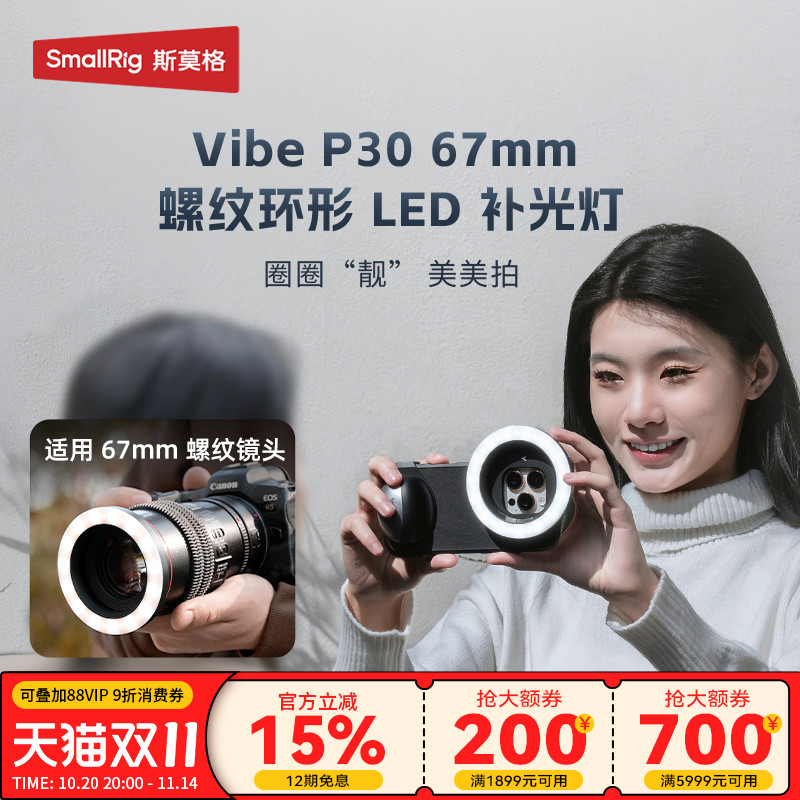斯莫格67mm螺纹镜头P30补光灯适用苹果iPhone 17 小米 vivo手机相机摄像美颜双色温led灯微距拍照面光圈圈灯