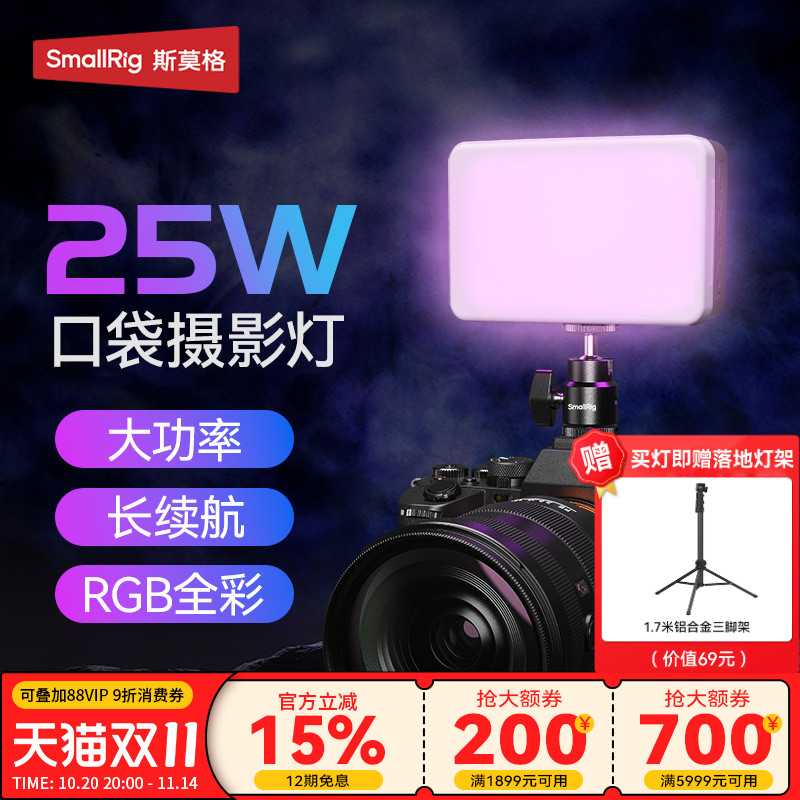 斯莫格RGB口袋补光灯RM 25C全彩led直播灯手持拍摄柔光灯便携式灯手机打光灯相机微单反25W美颜常亮40W摄影灯