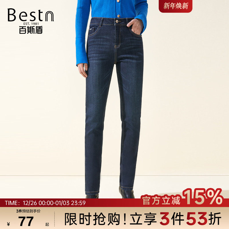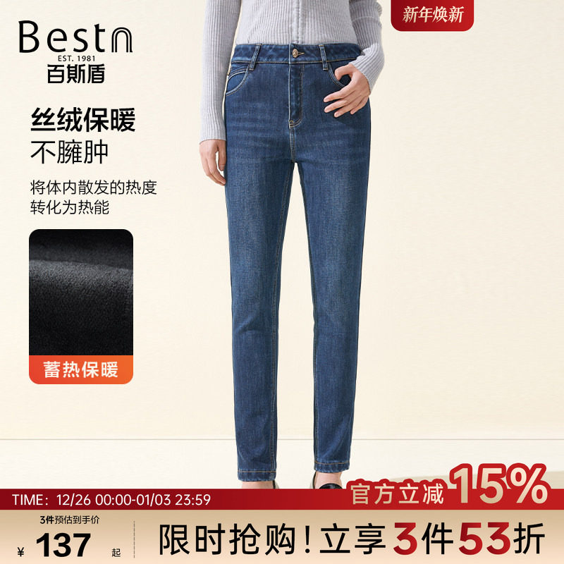 KZH真维斯加绒牛仔裤女秋冬新款修身显瘦铅笔裤弹力高腰小脚长裤