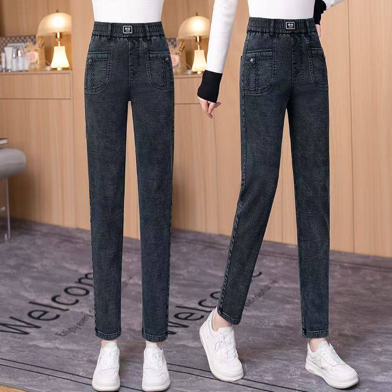 加绒牛仔裤女2025新款秋冬高腰妈妈裤子大码女裤弹力铅笔小脚长裤
