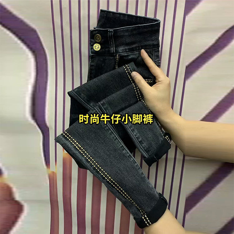 加绒加厚秋冬弹力高腰牛仔裤女铅笔长裤黑色修身显瘦小脚裤大码女