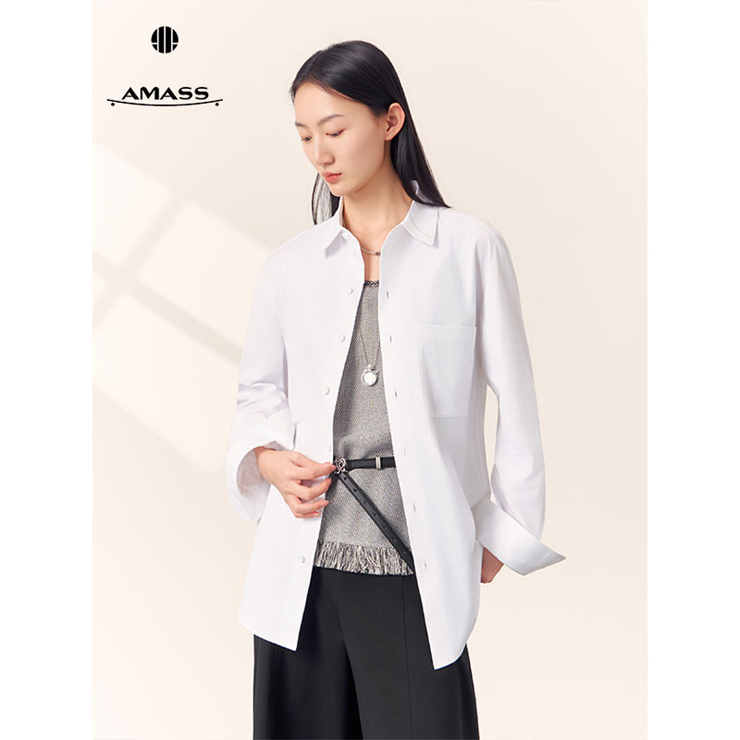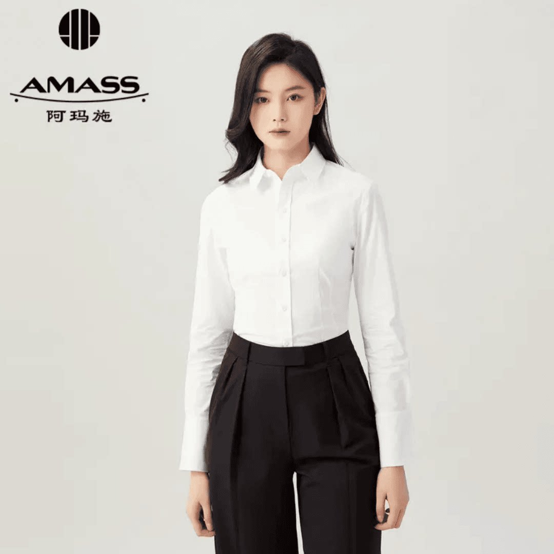 阿玛施AMASS新款【衣橱共享}简约经典休闲百搭白色长袖衬衫530079