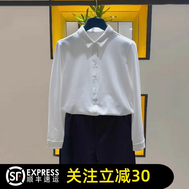 正品哥家精梳棉衬衫2026秋款小方领修身打底白色长袖衬衣上衣