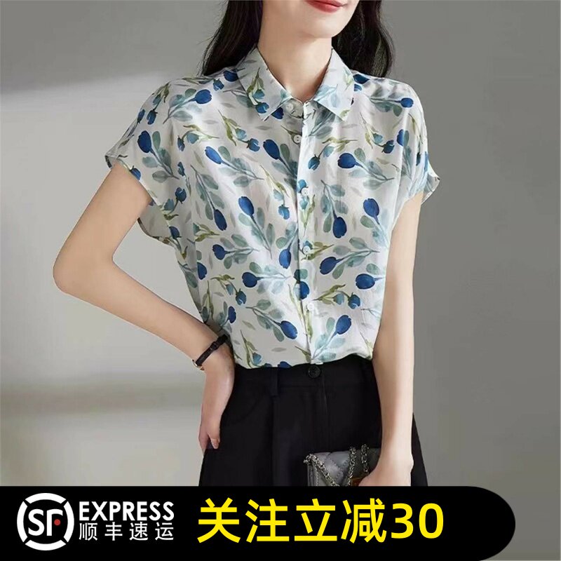 正品哥家官方2026夏季新款翻领碎花雪纺短袖衬衫女装休闲衬衣