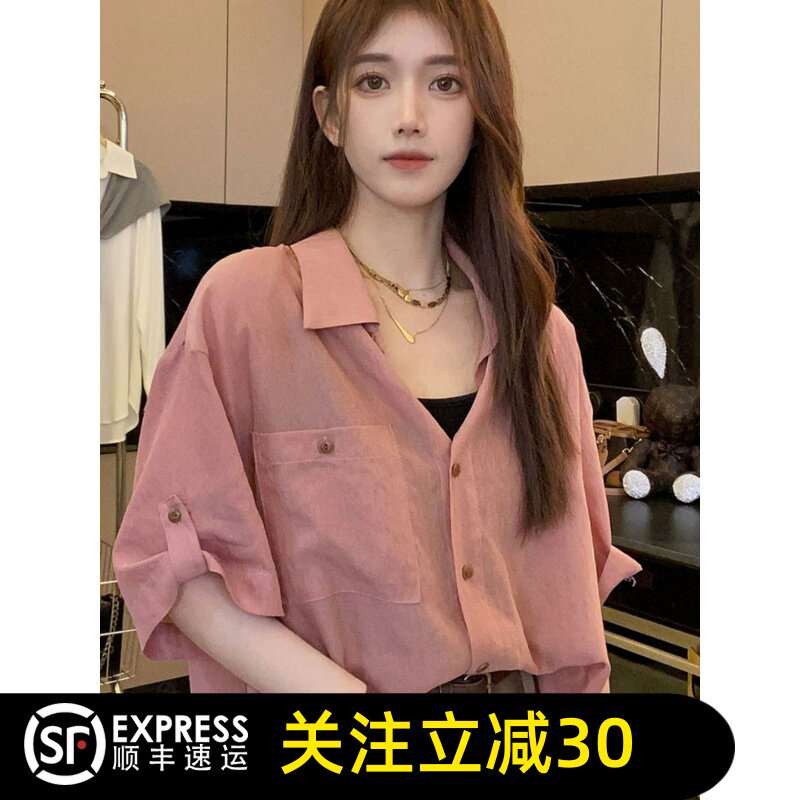 正品哥家官方2026夏新款翻领宽松半袖衬衫女洋气休闲防晒衬衣