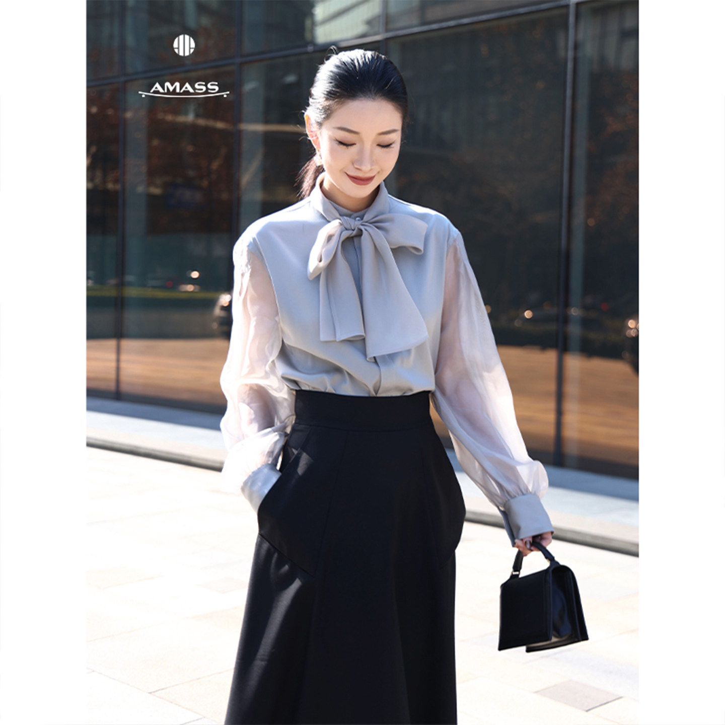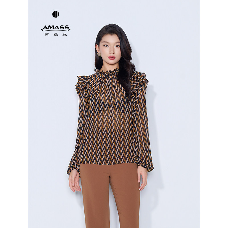 AMASS/阿玛施冬季简约舒适洋气松弛感微透百搭洋气显瘦衬衫530032