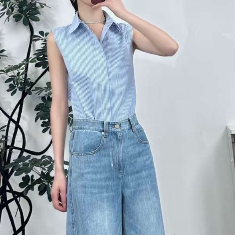 阿玛施AMASS 新款简约时尚上衣优雅气质显瘦文艺无袖白衬衫530075