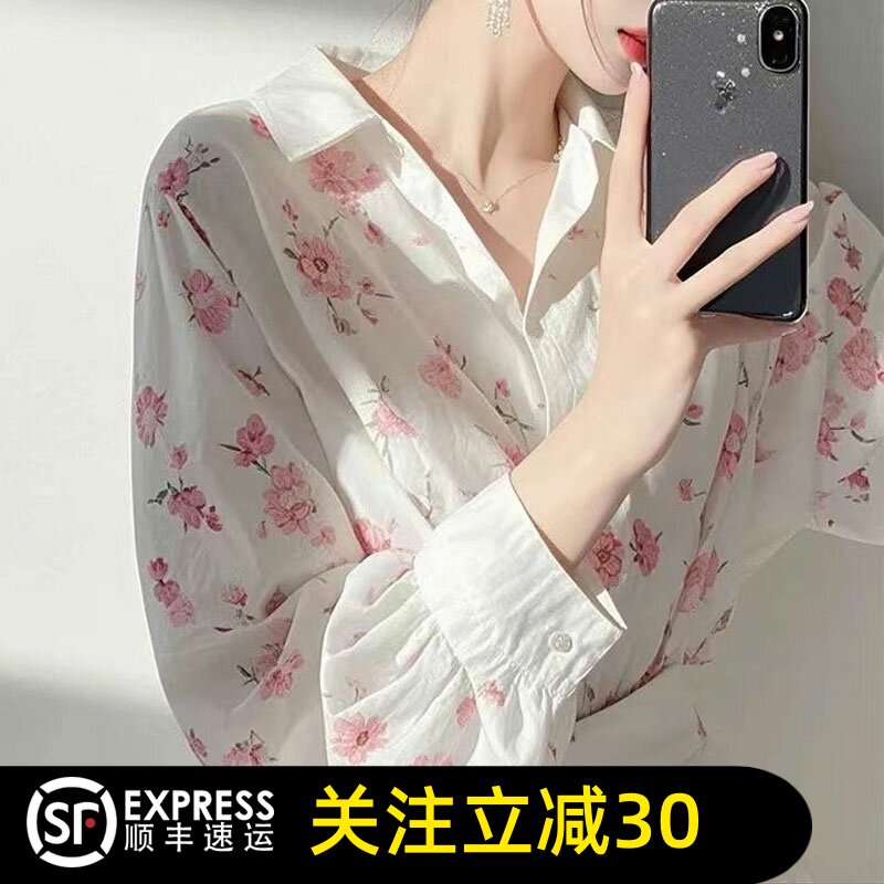 正品哥家2026春夏新款碎花休闲长袖衬衫女士洋气甜美减龄衬衣