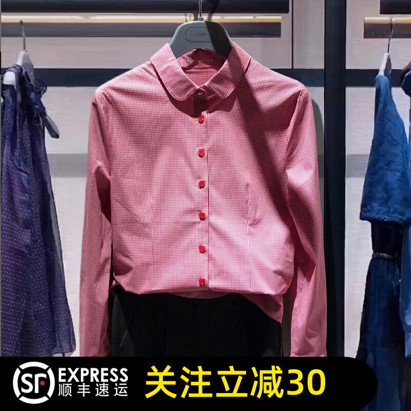1300822专柜正品2026新款时尚百搭显瘦格子衬衫女上衣