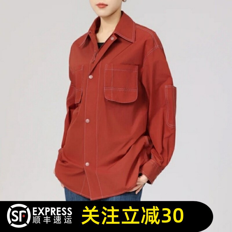 正品哥家2026春新款翻领明线休闲工装衬衫百搭宽松防晒外套女