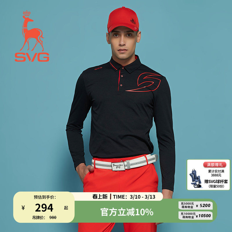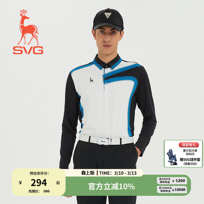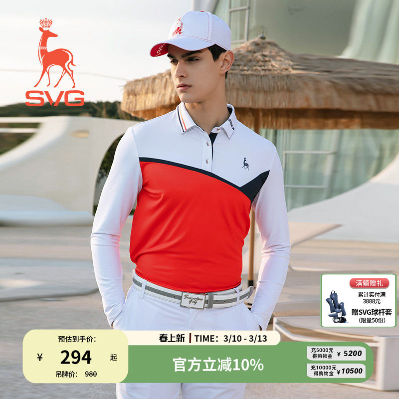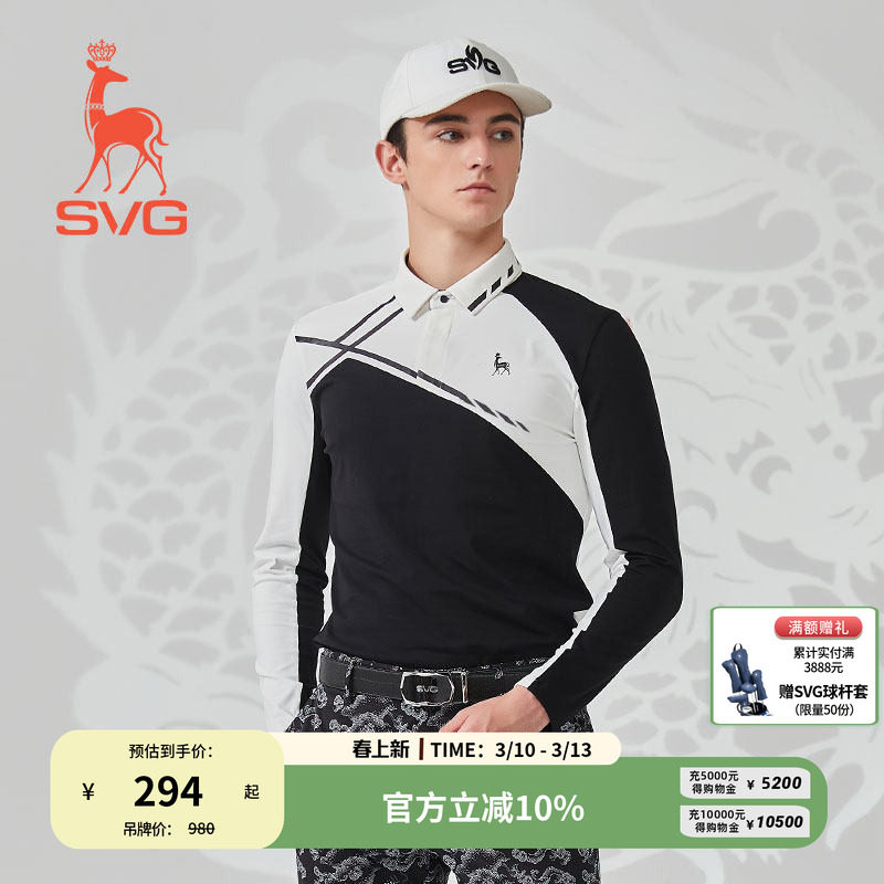 SVG高尔夫服装男春季新款长袖T恤时尚简约拼色男士POLO衫