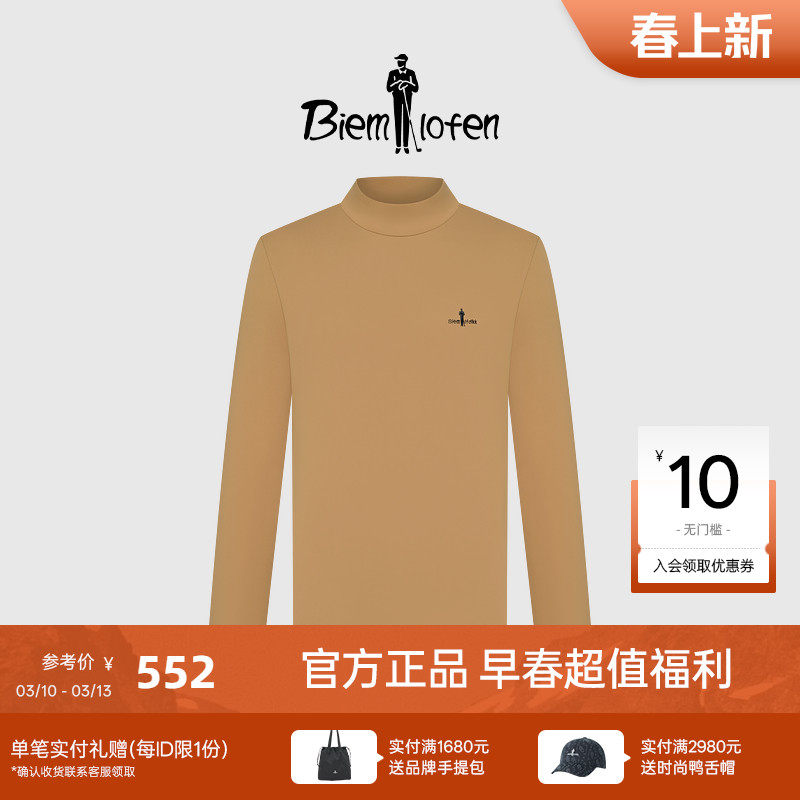 【轻量亲肤】比音勒芬高尔夫春季男上衣休闲小高领长袖T恤打底衫