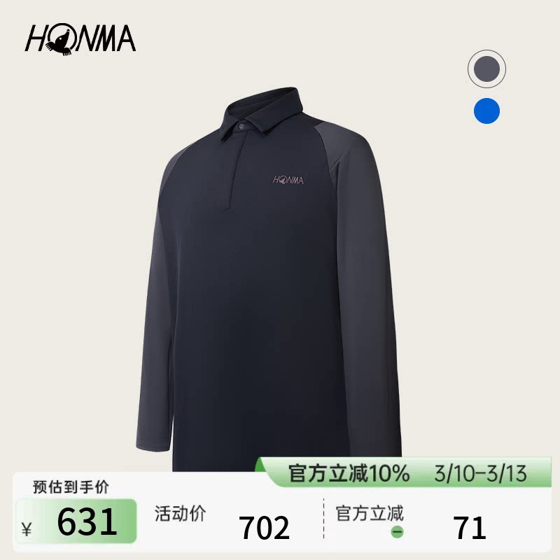 【专业高尔夫】HONMA男士长袖POLO衫高尔夫撞色设计亲肤时尚保暖