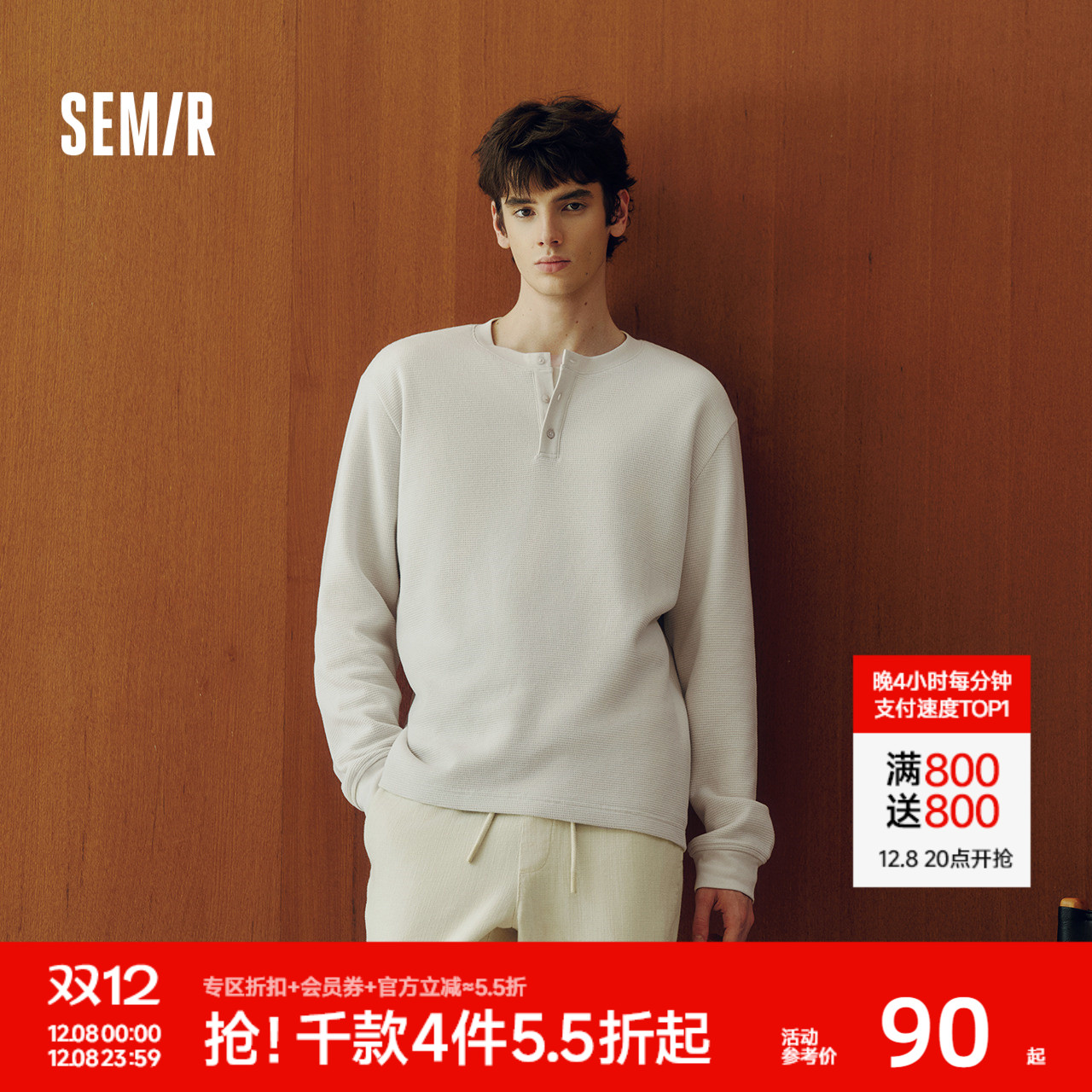 森马长袖T恤男华夫格纯色百搭打底衫冬季2025新款内搭上衣亨利领