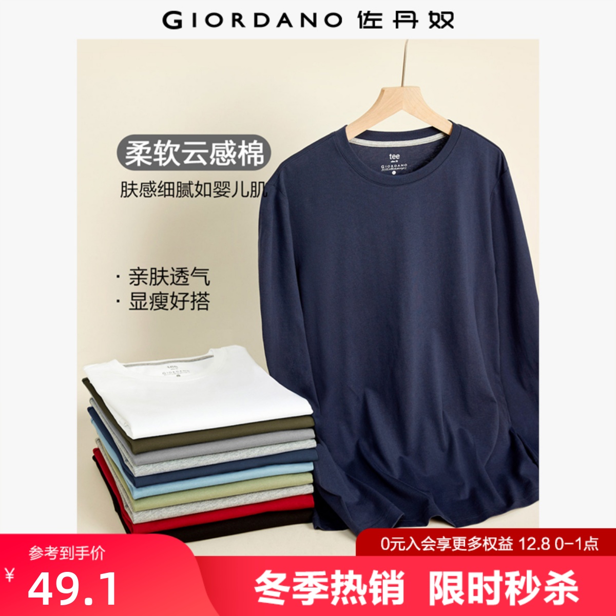 佐丹奴长袖t恤男新款纯棉贴身上衣基础款纯色圆领打底衫01023820