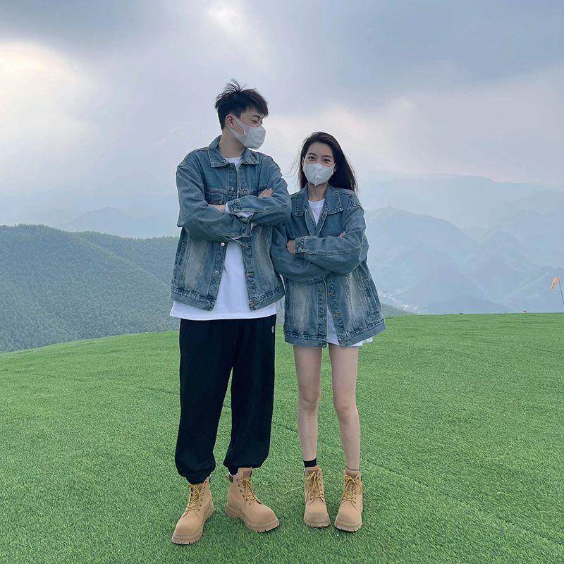 春秋季牛仔衣牛仔套装男士情侣装衣服外套韩版潮流夹克两件套上衣