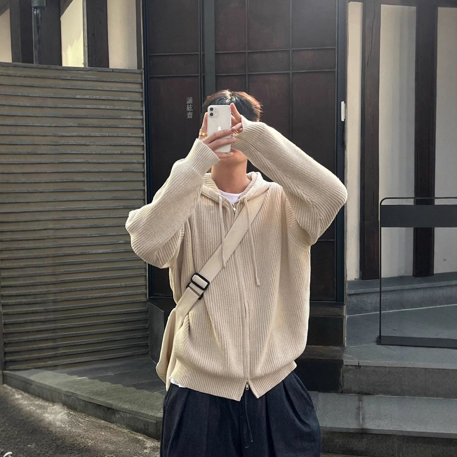 双拉链连帽针织毛衣外套男2025秋季韩版潮流慵懒风百搭情侣款上衣
