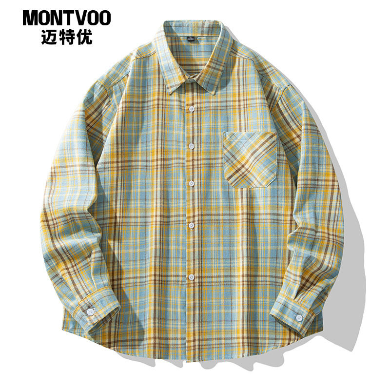 MY秋季新品韩版潮流复古格子衬衫大码翻领百搭长袖内搭情侣外套男